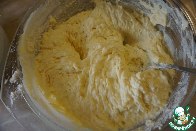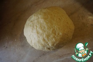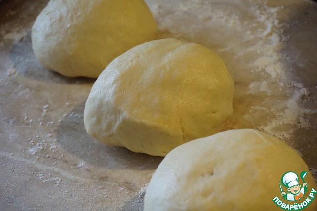 Скатываем тесто сначала в шар. Уже видно, что тесто получается слоеным.