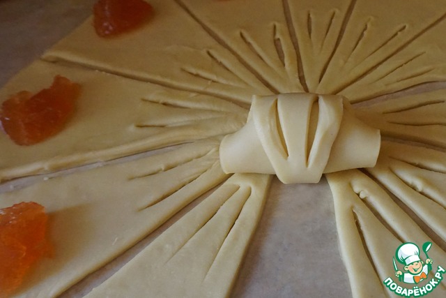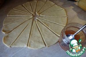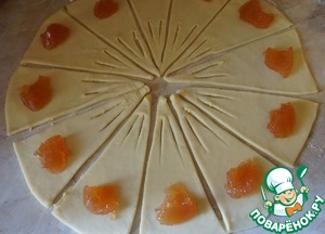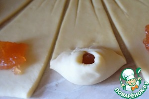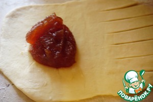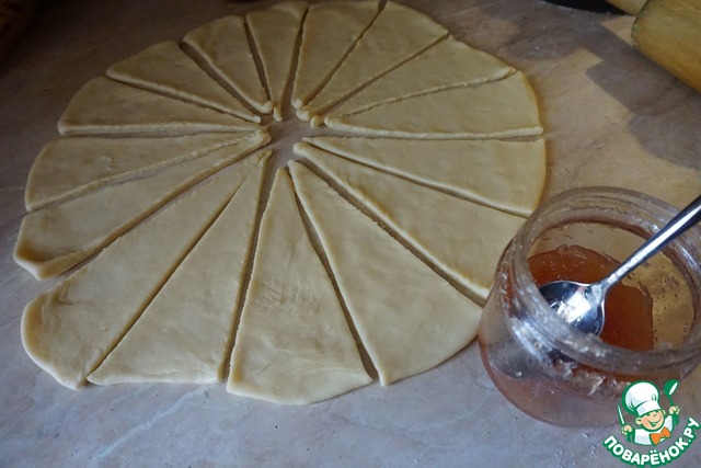 Кладем на каждый треугольник чуть больше чайной ложки повидла