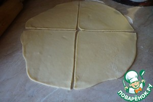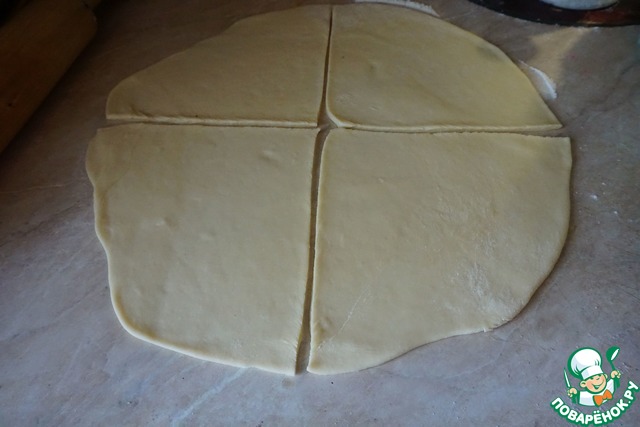 Второй вариант формовки (мой любимый). Также раскатываем тесто и делим его на 4 части.