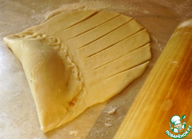 Третий вариант. Расскатываем тесто овалом.