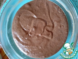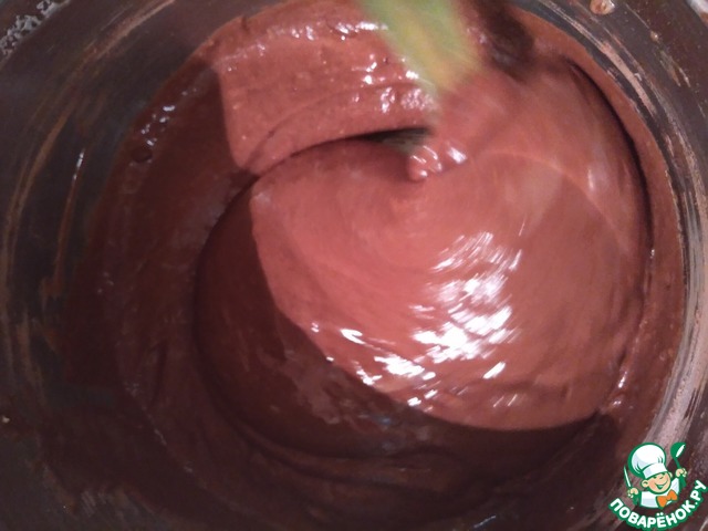 Количество ингредиентов расчитано на форму 18 см. Просеиваем в отдельную посуду муку, соду, какао, соль, добавила сахар. В чаше миксера смешиваем все жидкие (яйца, молоко, раст. масло, растопленное сливочное и уксус. Далее добавляем к жидким сухие и тесто готово.