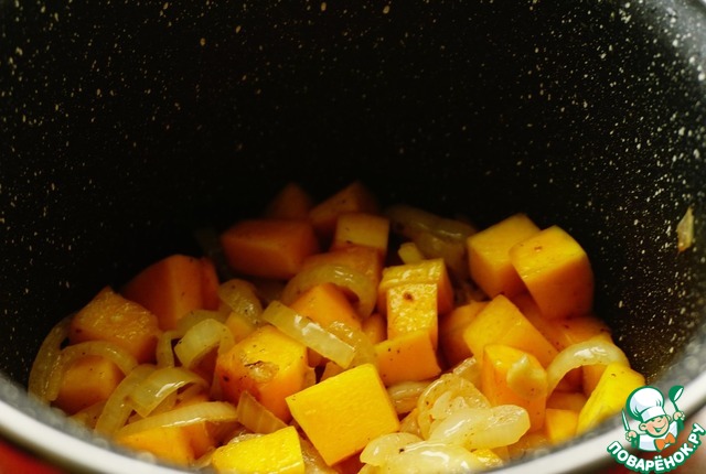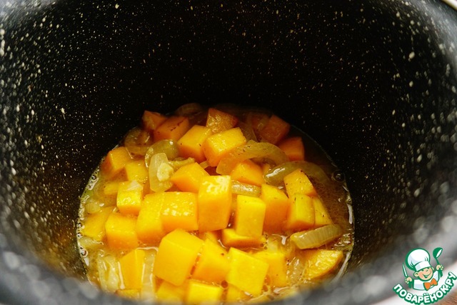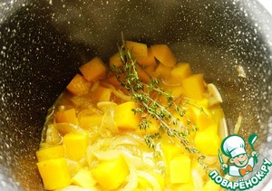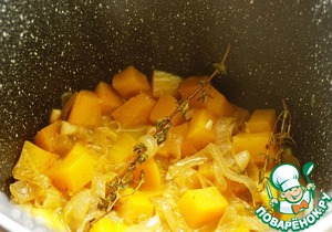 Добавляем тимьян, накрываем крышкой и варим до готовности тыквы.
