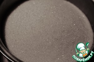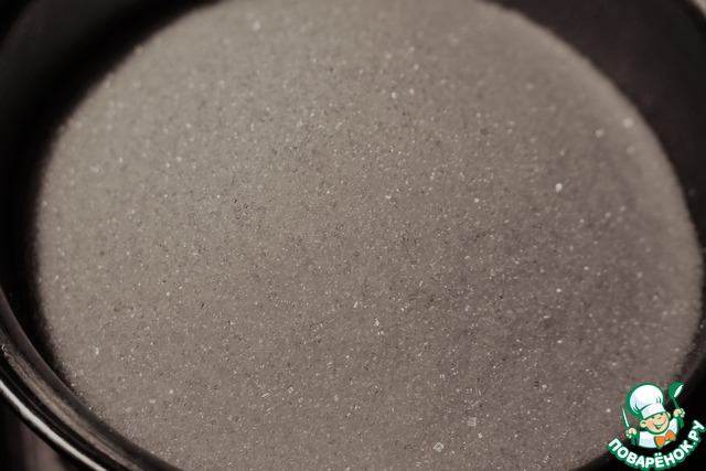 Варим сахарный сироп. Для этого в кастрюлю насыпаем сахар. Наливаем воду.