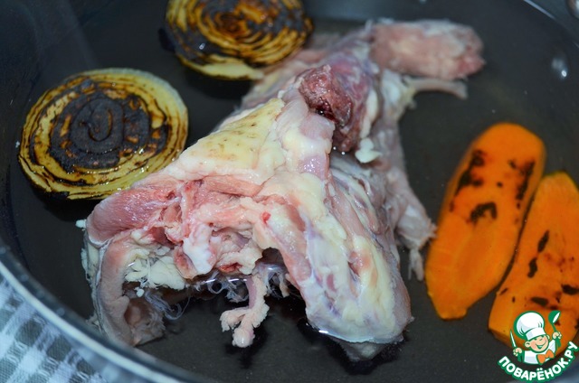 Лук и морковь "подпалить" на сухой сковороде, практически до черноты.