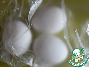 Заранее подготовить яйца. Помыть, обтереть насухо. Положить в пищевой пакет. Завернуть и убрать в морозилку накануне приготовления.