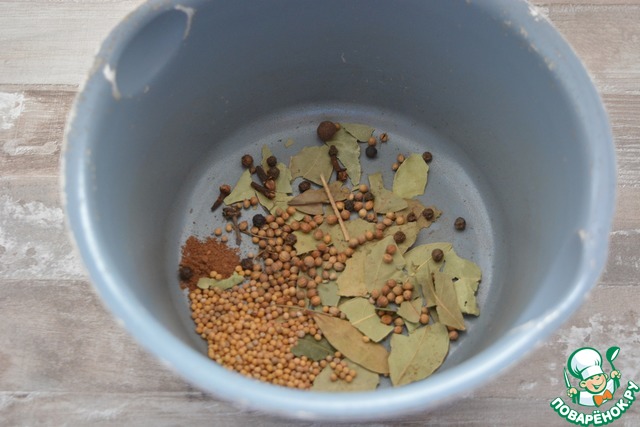 Сложите в кастрюлю все специи, добавьте соль, сахар, воду