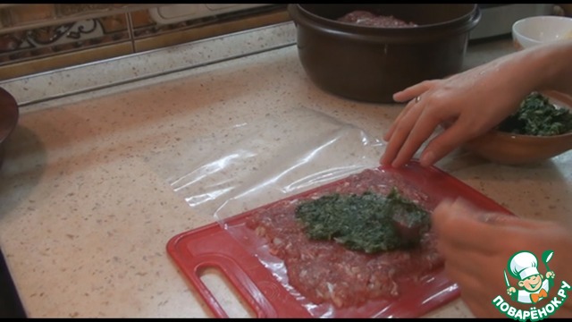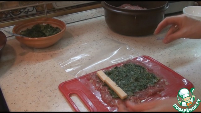 Рецепт «Рулет из фарша и шпината»: