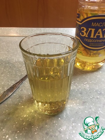 Готовим маринад: смешиваем 1,5 стакана охлажденной кипяченой воды с уксусом, добавляем сахар и соль, размешиваем до растворения. Затем добавляем растительное масло.
