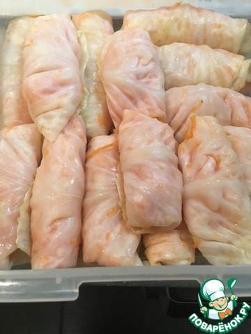 Так как кочан у меня был небольшой, то и рулетики получились аккуратненькими, не очень большими. Так их удобнее сервировать, а в дальнейшем ЕСТЬ!!! -