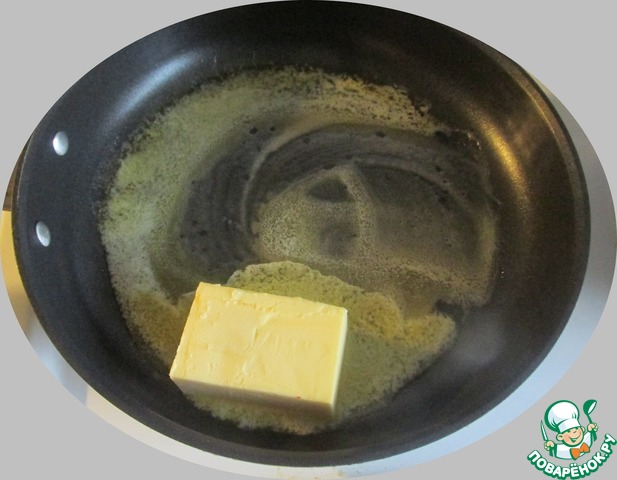 Выкладываем на сковороду сливочное масло и растапливаем на среднем огне