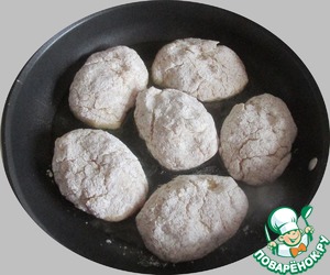 Из холодного (!) фарша, это и есть тот самый маленький нюанс, лепим небольшие котлетки, слегка обваливаем их в муке, я использую смесь рисовой и кукурузной, выкладываем на разогретую сковороду с растительным маслом