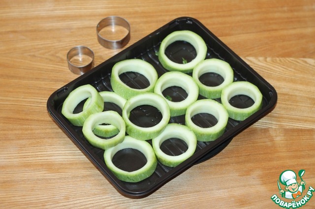 Рецепт: Кабачковые кружочки с курицей и виноградом