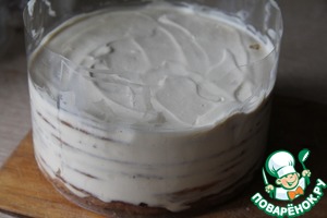 Торт лучше собирать в кольце, чередуя коржи с кремом.