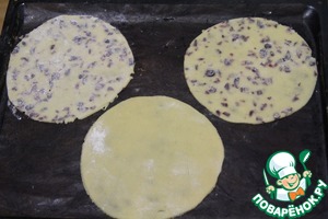 Разделить каждую часть на 4 части. Раскатывать тонко коржи размером 16 см. Обрезки все соберите и у вас получится еще один - девятый - корж.