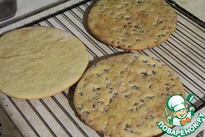 Выпекать при 170 градусах около 15 минут. Остудить на решетке. Укладывайте коржи на ровную поверхность, чтобы они не деформировались при остывании! Сначала они мягкие и очень (!) хрупкие, перекладывайте осторожно! Потом становятся твердыми (как у медовика).