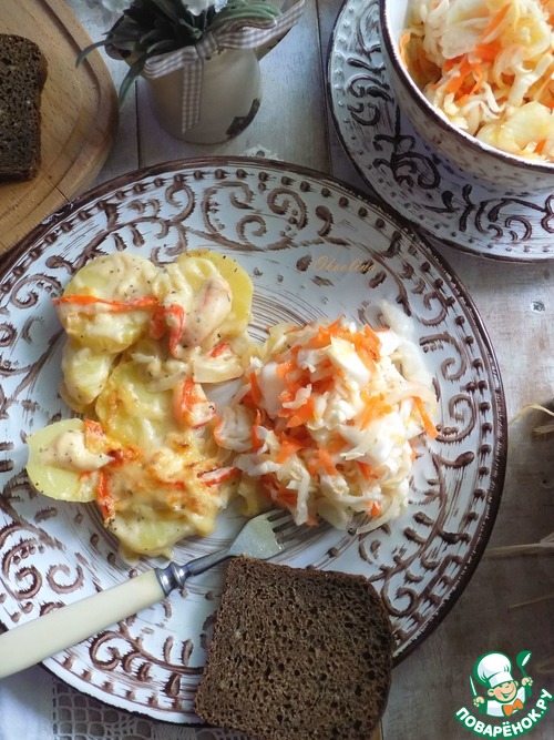 Делюсь с вами рецептом быстрой маринованной капусты, который мне достался от мамы моей подруги лет 40 назад. Рецепт актуален для квартир, где негде хранить банки с консервацией. Просто нужно сделать баночку литровую такой капусты, съесть её и опять сделать, когда захочется. Единственное, что я меняю в рецепте это количество уксуса и его концентрацию с годами, т к есть острого сейчас мне практически нельзя, то я использую в капусте виноградный уксус, а раньше эссенцию уксусную заливала. Это очень вкусная капуста, сладенькая такая, от которой, ну никак, оторваться невозможно! Идеальной парой будет к ней ароматный картофель, запечённый в сливках.