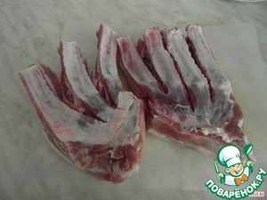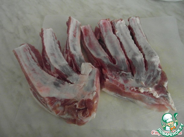 -надрезать подготовленное мясо вдоль ребер, но не до конца