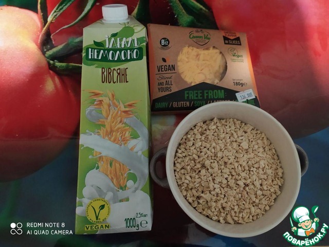 - Сыр твердый (Сыр растительный, можно заменить на постный майонез) — 50 г