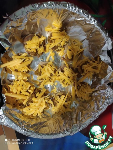 Форму для выпекания застелить фольгой, смазать немного маслом, выложить сушки, начинить фаршем, а сверху присыпать тертым сыром (или фарш смешать с майонезом, если сыра нет) Накрыть сверху фольгой, и запекать минут 15-20