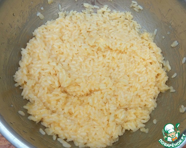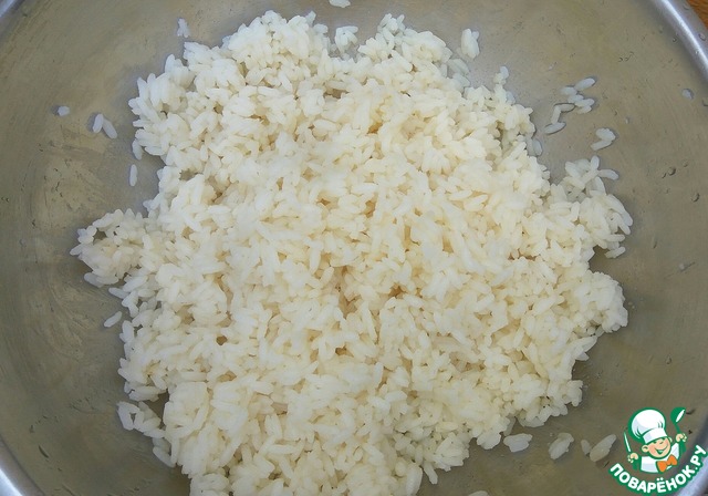 Промыть рис, залить 1 стаканом воды, сварить до готовности в подсоленной воде. -