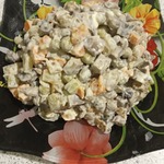 Не знаю почему пишут, что он похож на оливье . Ни на вид, ни на вкус вообще не похож и близко на оливье!