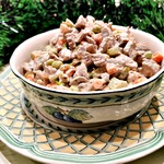 Замечательный салат, отличное сочетание продуктов! Спасибо, дорогой автор! Для критикующих и сомневающихся. Во-первых, да, это, в своём роде, аналог Оливье. Сытное и самодостаточной блюдо. Не закуска к горячему мясу или рыбе, а самостоятельная закуска. Во-вторых, по поводу как будто бы не аппетитного вида. Салат этот не слоеный, хотите красоты - делайте слоями. Но той гармонии вкуса, которая имеет место быть в смешанном салате, вы не получите. А этот салат абсолютно гармоничен по сочетанию продуктов. Даже вареная морковь, которую я просто не выношу, здесь совершенно к месту. Смешивайте, смешивайте и ещё раз смешивайте. Вкуснейший салат для праздничного застолья!