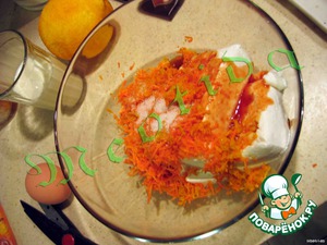 смешиваем творог, тертую на мелкой терке морковочку и цедру, ванильный сахар, варенье, масло в однородную пушистую массу