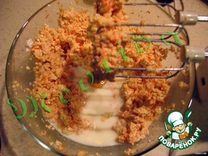 добавляем молоко, слегка взбиваем тесто миксером на маленькой скорости