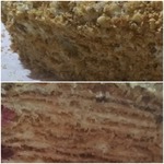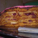 Тесто шикарное, мне кажется, что с более удачным тестом я еще не работала. Торт я делала круглым, где-то 23-24 см в диаметре. Я очень боялась, что не получится раскатать корж достаточного размера, поэтому поделила на 10 частей. Но тесто раскатывается просто великолепно! Кстати, муки у меня ушло больше, но это нюансы.