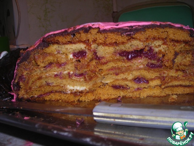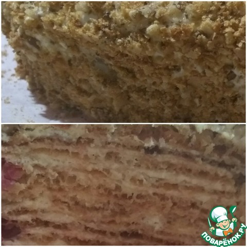 Теперь про крем: 1000 мл это огромное количество. У меня осталась половина крема, хотя выкладывала я на каждый корж по 3 столовых ложки + верх + обмазка с боков . Ок, пусть у меня коржей вышло меньше, чем у автора - но не ПОЛОВИНА же должна была остаться?? Сахара на такое количество должно быть конечно не 30 гр. - проще уж вообще ничего не добавлять. Добавляла 1,5 граненых стакана, и то получилось умеренно сладко.