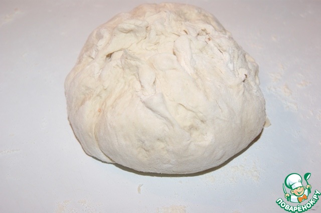 И перевернув его сборкой вниз, сформуйте в гладкий красивый шар. Хорошо припудрите мукой сверху и равномерно разгладьте ее руками.