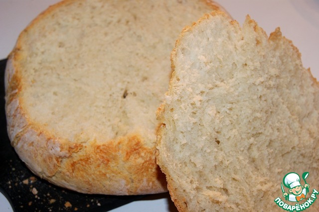 Как только прошло по времени 30 минут при 250 градусах при закрытой крышке, снимите осторожно крышку и минут 15 хлебушек подрумяниться сам, со всех сторон! И когда Вы его извлекете для остывания на решетку или толстое полотенце, хлебушек начнет очень тихо потрескивать, еле слышно, своей румяной корочкой!
