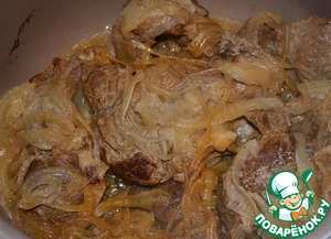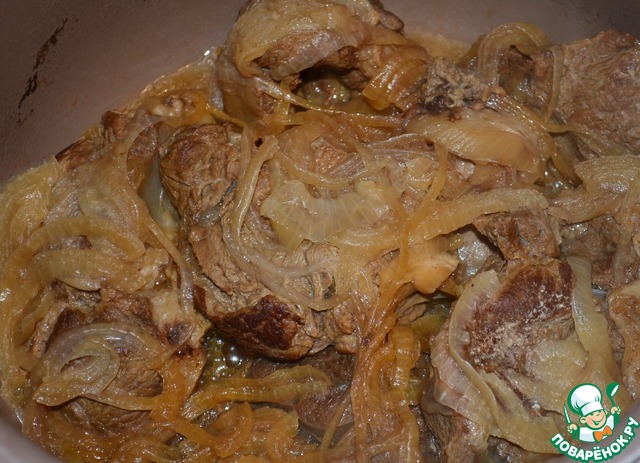 Выложить в чашу мультиварки или в казан, нарезать лук, добавить.