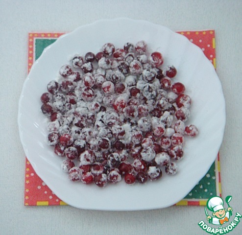 Посыпать клюкву сахарной пудрой, перемешать и отставить в сторону.