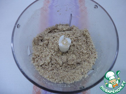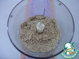 Для начинки измельчить миндаль с сахаром и пряностями. Добавить коньяк и перемешать. Включить духовку для разогрева до 200 *С.