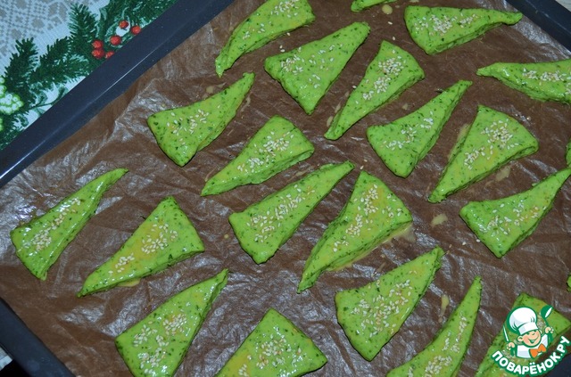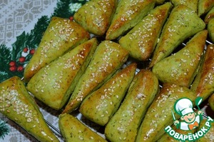 Перед выпеканием заготовки смазать смесью желтка и сливок, присыпать кунжутом.