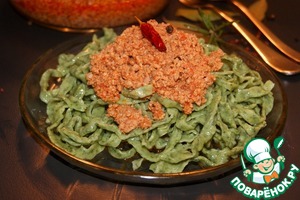 Сервировать со спагетти или лингуи́не, но я решила побаловать свою семью и приготовила к сальце кима домашнюю пасту с шпинатом.