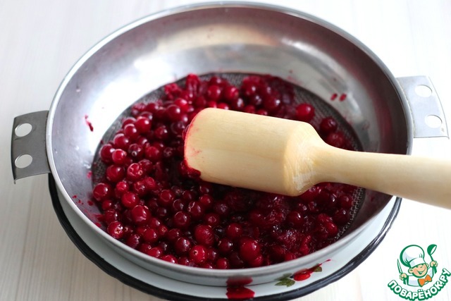Клюкву (1 стакан) протереть через металлическое сито для удаления шкурки.