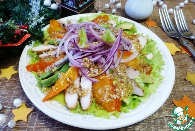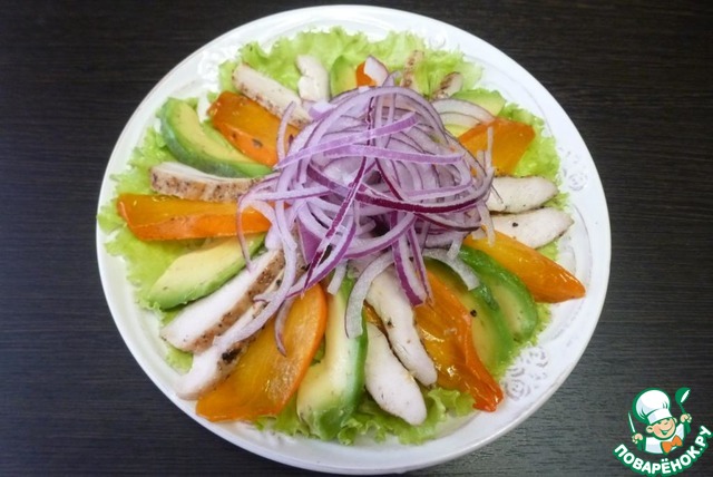 Рецепт «Куриный салат с авокадо и хурмой»: