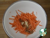 Масло нагреваем в сковороде до появления запаха и выливаем на специи. Перемешиваем. |