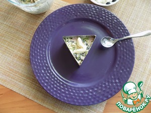 Салат в форме промазываем небольшим слоем майонеза. Это для того, чтобы слой натёртого белка прилепился.