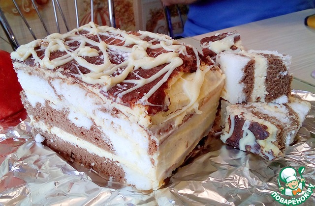 Выпекать при 180 гр. 45 минут. Остудить и разрезать на три части.
