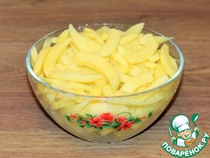 1. Очищаем картофель от шкурки и промываем. Нарезаем брусочками. Картофель был порезан с помощью кухонного комбайна GALAXY GL2300.