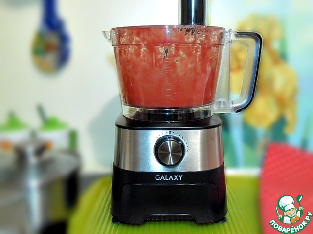 Измельчите помидоры и перец, мне в этом помог кухонный комбайн