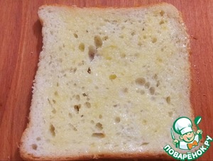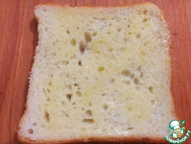 Сливочное масло растопить, смазать ломтики хлеба с одной стороны.