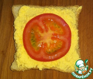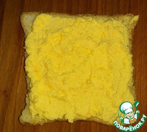 Смазать ломтики хлеба с другой стороны желтково-сырной намазкой.