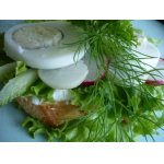 По кругу разложить нарезанный на тонкие полосочки белок.