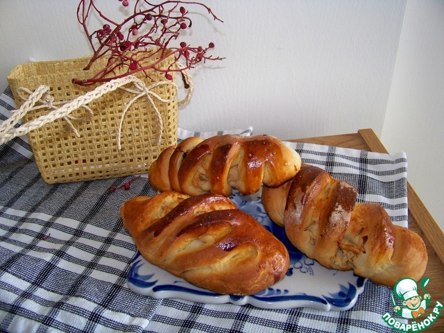 Смазать яйцом и выпекать при 180 градусах до легкого зарумянивания. Примерно 25 минут.