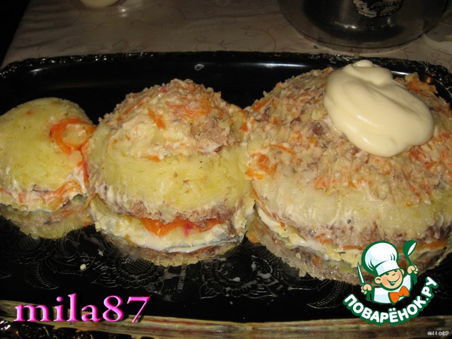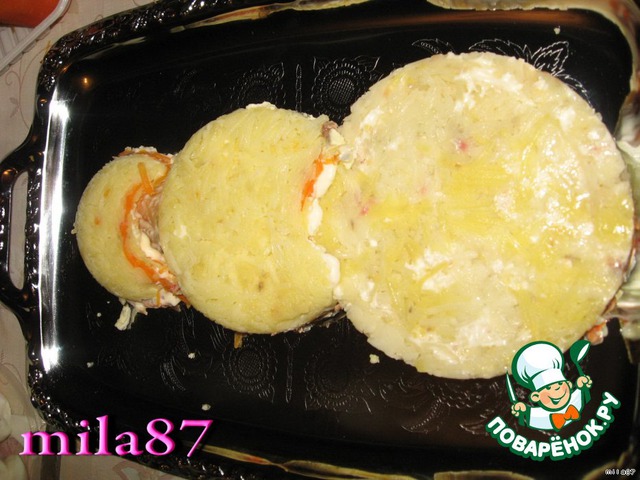 я на НГ его делала ввиде снеговика, а потом уже просто как вкусный вкусный салат ))))