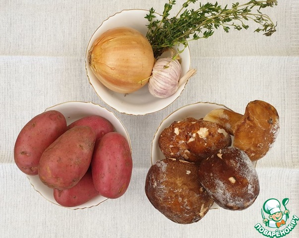 Ингредиенты для «Картофель с белыми грибами по-деревенски»: